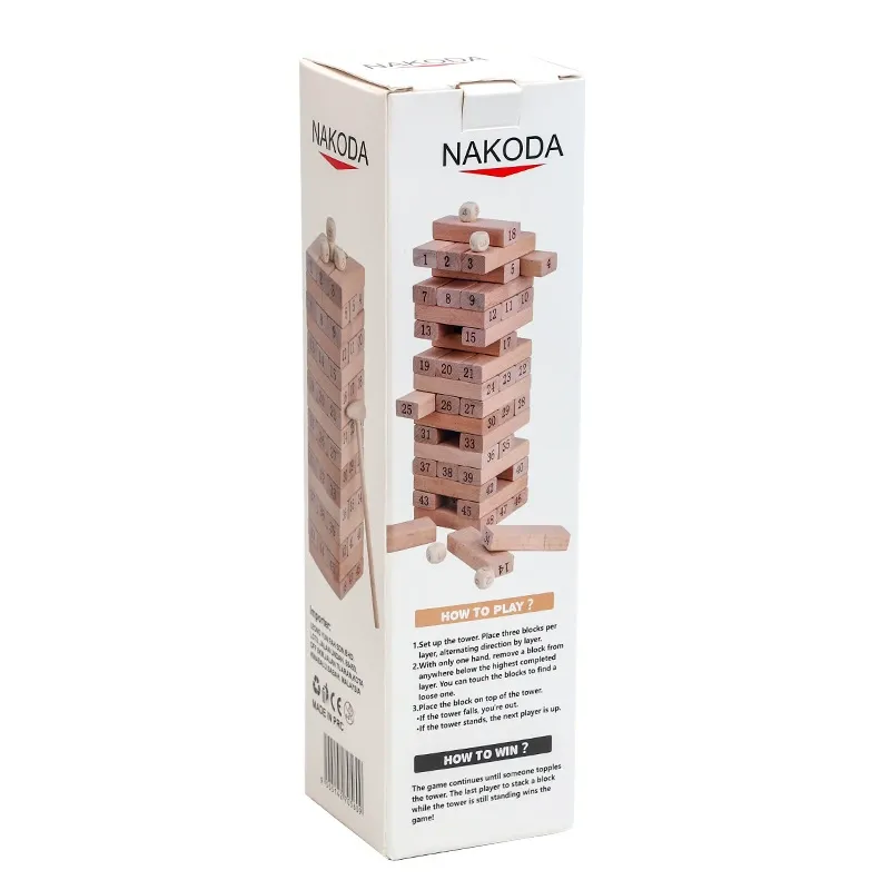 Wooden Numbered Tumbling Tower | Classic Stacking Block Game for Family & Party Fun